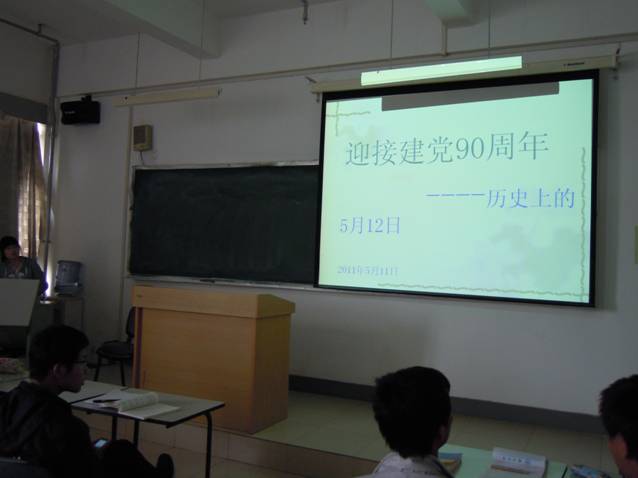 近日,为迎接党建90周年,在我院团委指导下,各班级团支部举行了“历史上的今天”主题团组织活动,同学们将收集来的党史上具有重大意义的人物事迹或者战役等做成幻灯片,向全班进行展示,并在活动中进行了热烈的讨论。
