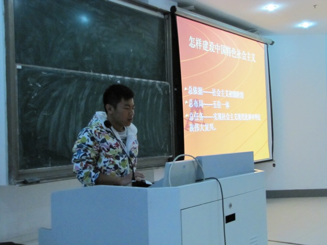 围绕活动的主题,与会同学积极探讨了党的十八大与当代大学生人生发展之间的关系。此次活动在五位团支书的组织下分为三个部分进行。首先全体同学起立奏唱国歌,在嘹亮的国歌声中同学们的爱国热情得到了升华,同时也体会到了自身肩负的历史重任。接着,同学们积极上台发表对十八大精神的感悟以及自己从中获得的启发。他们结合自己的专业及就业方向通过PPT展示、即兴演讲等方式表达了自己对于未来中国经济发展的信心,深入解读了十八大报告中体现出的新内容,发表了自己对人生发展的看法与意见。他们的发言展现了当代大学生乐观向上,胸怀天下的精神风貌,体现了他们关心时政,情系万家的广阔胸襟,同时也赢得了现场观众的阵阵掌声。最后,由主持人对本次主题团日活动作出总结,他号召大家在十八大的指引下抓住历史机遇,努力学习,提高自己的综合素质,把个人理想融入到人民群众的共同理想之中,以振兴中华为己任并最终开创自己新的人生格局。