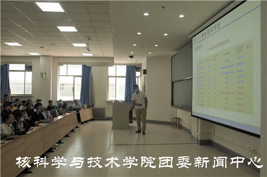 会议伊始,张敏老师为同学们介绍了参与宣讲的两位老师以及专业分流的具体情况。然后,张世旭老师从核技术与核工程与辐射防护与核安全两个专业的情况对比说起,详细介绍了两个专业的区别之处,又从核技术与核工程的专业概况等为切入点,为同学们详细介绍了核技术与核工程专业的学习内容以及未来的就业情况。而彭海波老师则从辐射防护与核安全专业的课程设置为切入点,为同学们分析了专业课程设置的原因,未来的就业升学等情况。最后,张敏老师宣读专业分流规则,通过问卷的形式对同学们专业选择的意愿进行调查。