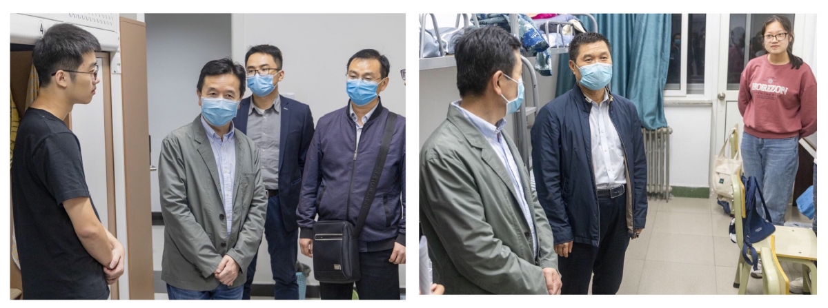 党委书记杨毅与新生亲切交谈,详细询问了新生学习、家庭和生活等方面的情况,就住宿条件、校园环境、同学之间的相处方式以及疫情期间需要注意的事项与新生进行了细致的交流。