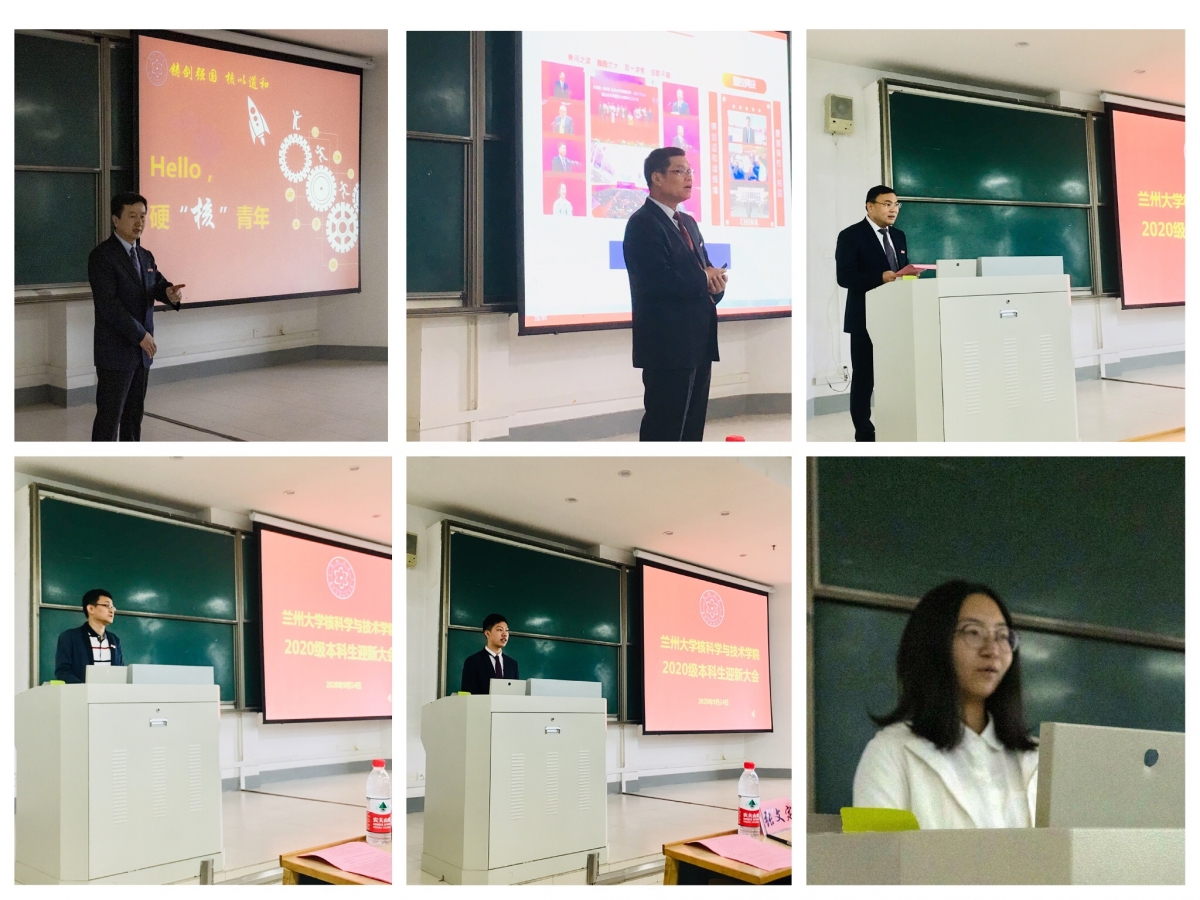 14日上午8:30,2020级本科生迎新大会在榆中校区天山堂C203隆重举行。中科院近代物理研究所教育处处长袁小华,中科院近代物理研究所天体物理研究室主任、350vip8888新葡的京集团-近物所共建核物理系主任唐晓东,学院党政领导、部分教师代表、辅导员、班主任以及2020级全体新生参加了大会。