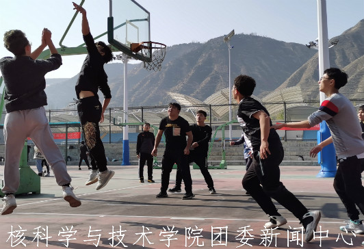 随着哨声吹响,比赛正式开始,双方选手全神贯注地投入比赛。19核物的胡一鸣率先抢到了首发球,但由于己方队伍的一点小失误加上对方队伍紧密的配合,乙队拿下首分,现场一片欢呼。之后,乙队又以两个三分球将比分差距拉大。甲队见状也展开了更为精密的配合,将比分一点一点的追回来。最终上半场以18:15的比分结束,甲队暂时领先。